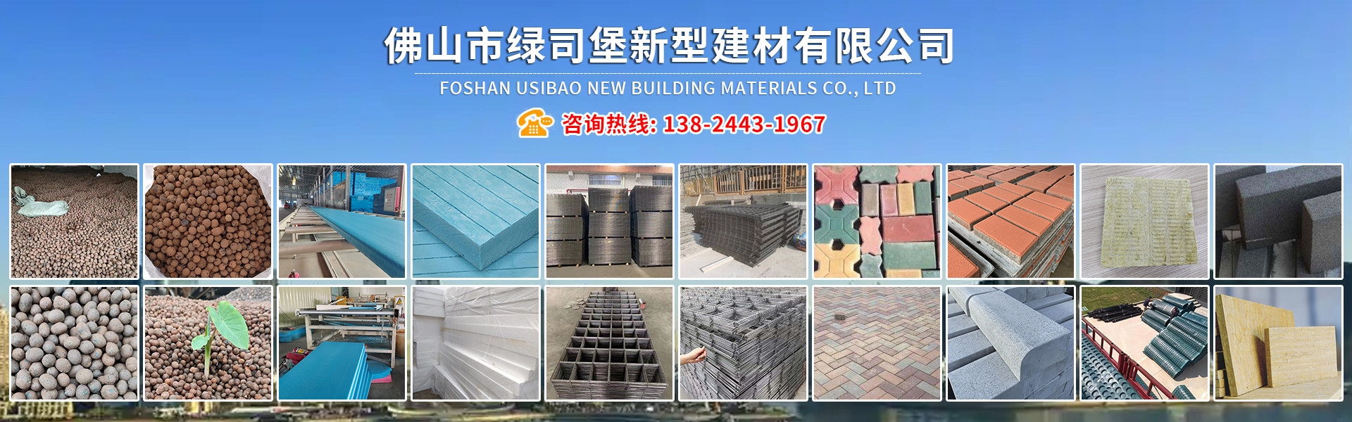 產品有:陶粒、XPS擠塑板、陶砂、無氟co2阻燃板、擠塑復合板。配送材料有:碰焊網、專用膠水、泡沫板、巖棉板、玻璃棉氈、珍珠巖、聚酯無紡布、纖維網格布等。